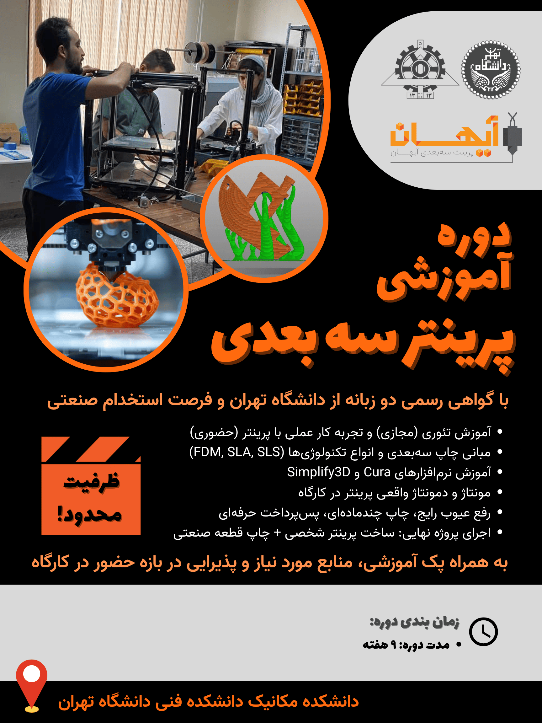 - آشنایی با مواد مصرفی (فیلامنتها، رزینها) و کاربردهای صنعتی