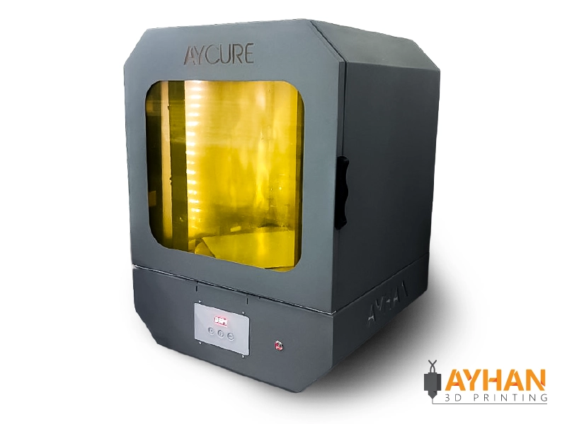 دستگاه پست کیور پرینت سهبعدی AyCure یک تجهیز حرفهای برای فرآیند نهایی قطعات رزینی است. این دستگاه با ترکیب دقیق نور UV و کنترل دمای هوشمند، قطعات چاپشده را به حداکثر استحکام، پایداری ابعادی و کیفیت سطح میرساند.